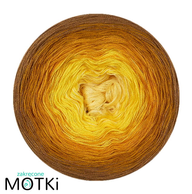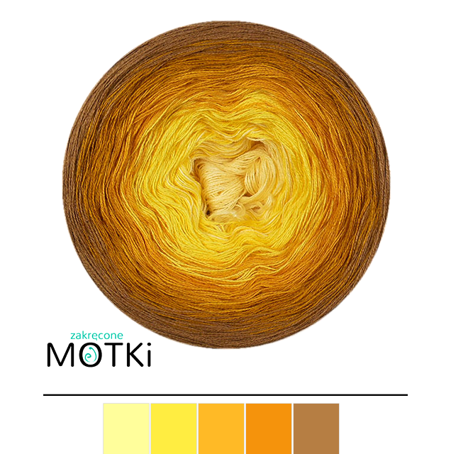 (5) Włóczka Ombre bawełna/akryl Futrzany Filozof: jasny żółty/ słoneczny żółty/ kurkuma/ curry/ ciepły brąz