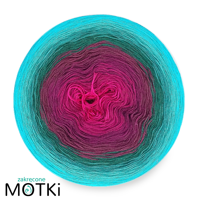 Włóczka Ombre OK8 to wyjątkowy motek, który zachwyca intensywnością i głębią kolorów. Płynne przejścia od soczystej fuksji i jeżynowych odcieni, przez szlachetne wino, aż po butelkową zieleń, morski i grynszpan tworzą zjawiskowy gradient inspirowany naturalnym bogactwem barw. To doskonały wybór dla twórców, którzy pragną połączyć elegancję z odrobiną dramatyzmu w swoich projektach.