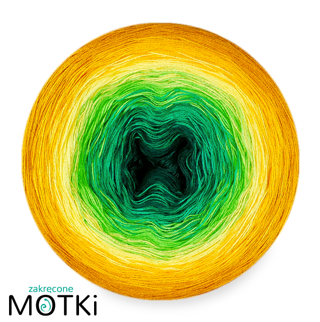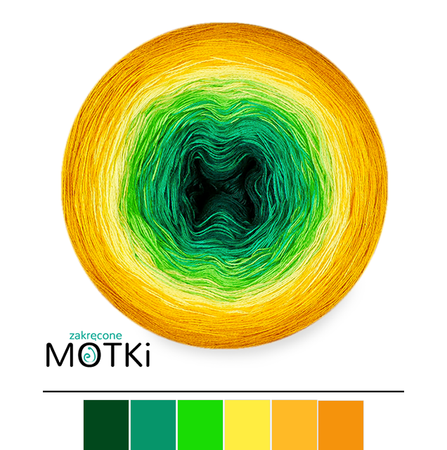 (6) Włóczka Ombre bawełna/akryl B775: butelkowa zieleń/ absynt/ zielone jabłuszko/ słoneczny żółty/ kurkuma/ curry