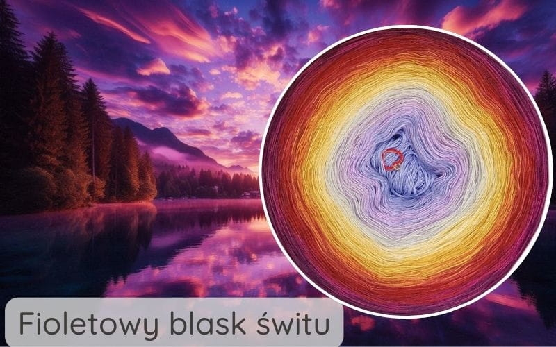 Motek ombre Fioletowy Blask Świtu to ręcznie robiony produkt z włóczki bawełniano-akrylowej, który łączy w sobie jedenaście pięknych kolorów inspirowanych naturą: krokus, jasny fiolet, popielaty, jasny żółty, intensywny żółty, kurkuma, koniak, cegła, burgund, jeżyna oraz ciemna jeżyna. Te harmonijne odcienie płynnie przechodzą jeden w drugi, tworząc efektowny gradient, który doskonale oddaje magię wschodzącego słońca.