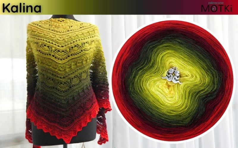 (8) Kalina - Merino/akryl - jasny żółty/limonka/oliwka/ciemna oliwka/khaki/wino/bordo/czerwień