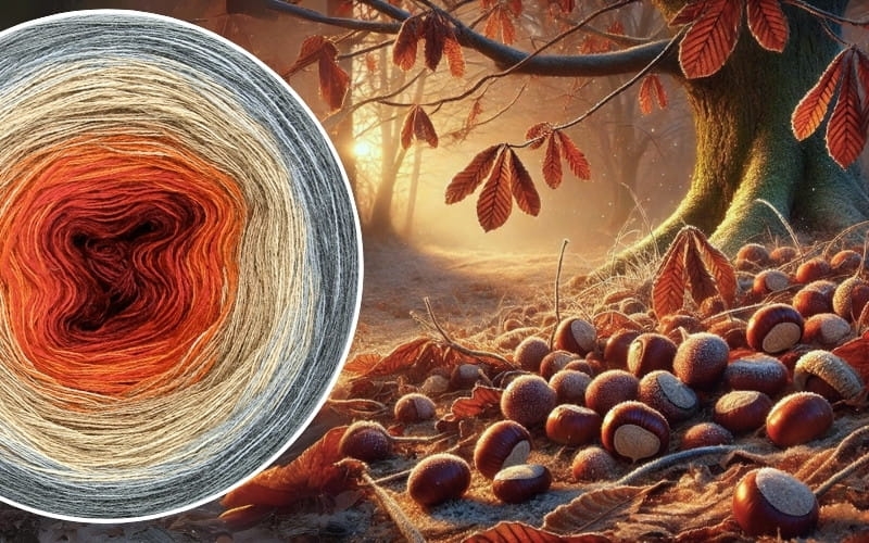 (8) Kasztanowe Echo Zimy - Włóczka Ombre - Merino/akryl: bordo/ czerwień/ rudy/ ciepły brąz/ toffi/ ciepły beż/ średni szary/ szary