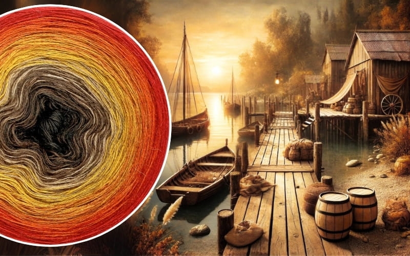 (8) Korzenna Przystań - Włóczka Ombre - Merino/akryl: czekolada/ ciemny brąz/ ciepły brąz/ kurkuma/ curry/ koniak/ rudy/ czerwień