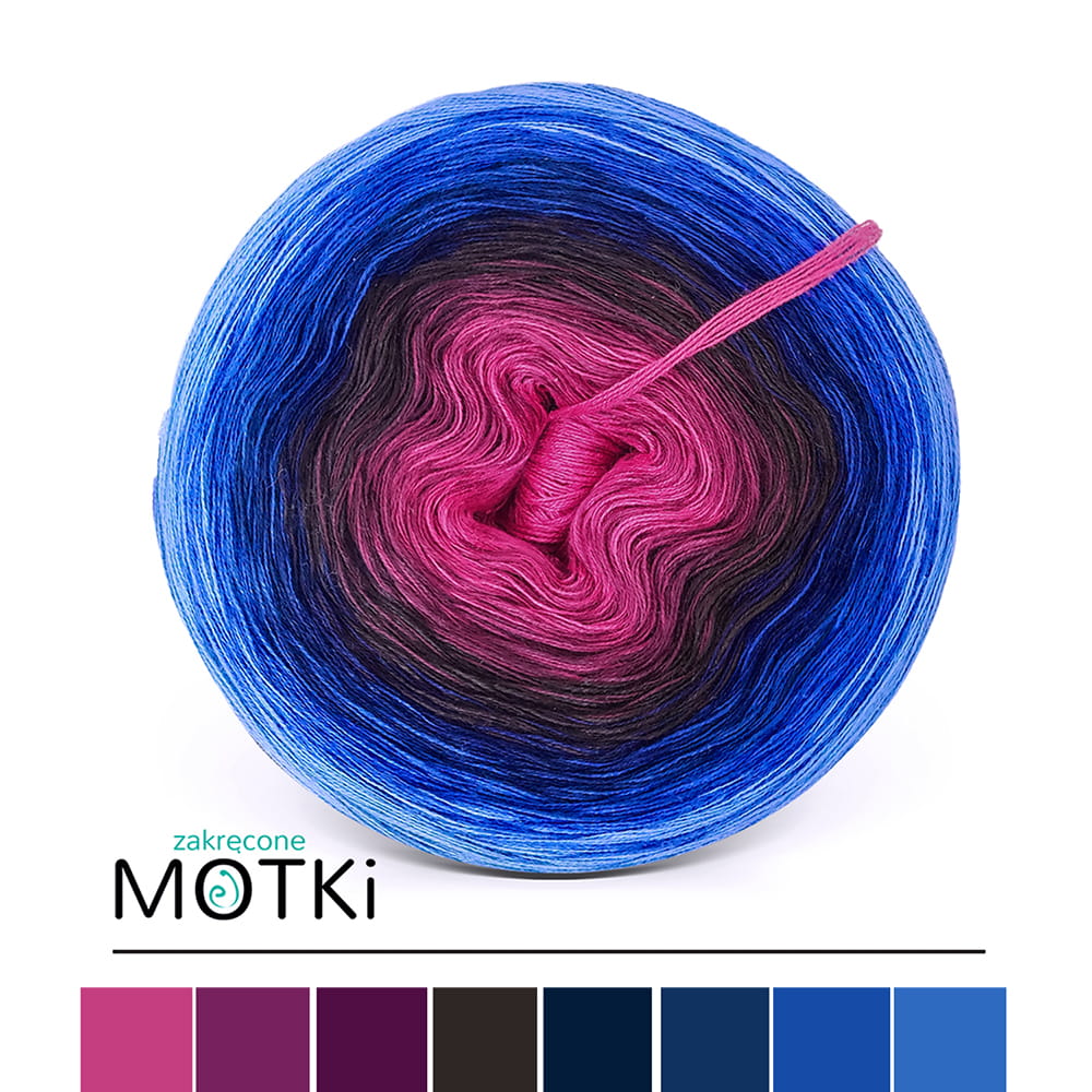 (8) Motek Ombre bawełna/akryl Kwiat Fuksji: fuksja/ jeżyna/ ciemna jeżyna/ czekolada/ granat/ ciemny niebieski/ kobalt/ atrament