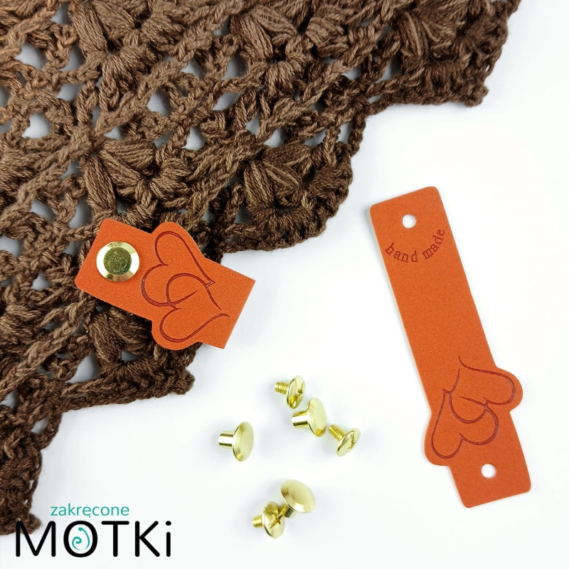 Metka ekoskóra Serce Handmade 7.5x2.5cm Pomarańczowy