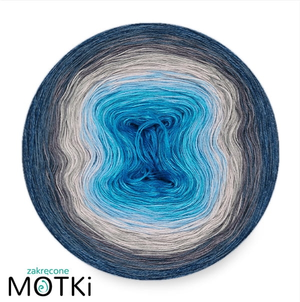 Włóczka Ombre Morski Sztorm to motek inspirowany siłą i pięknem morskich fal. Przejścia od głębokiego indygo i denimu, przez stonowane szarości i popiel, aż po chłodne błękity, cyjan i lazur tworzą dynamiczny gradient, który doskonale oddaje klimat burzliwego morza. Idealna dla twórców, którzy pragną uchwycić naturę w swoich projektach.