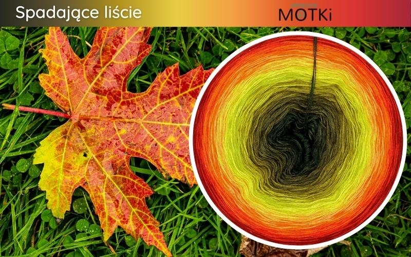 (10) Spadające liście Merino/akryl butelkowa zieleń/ wojskowa zieleń/ ciemna oliwka/ oliwka/ limonka/ słoneczny żółty/ pomarańcz/ rudy/ czerwień/ bordo