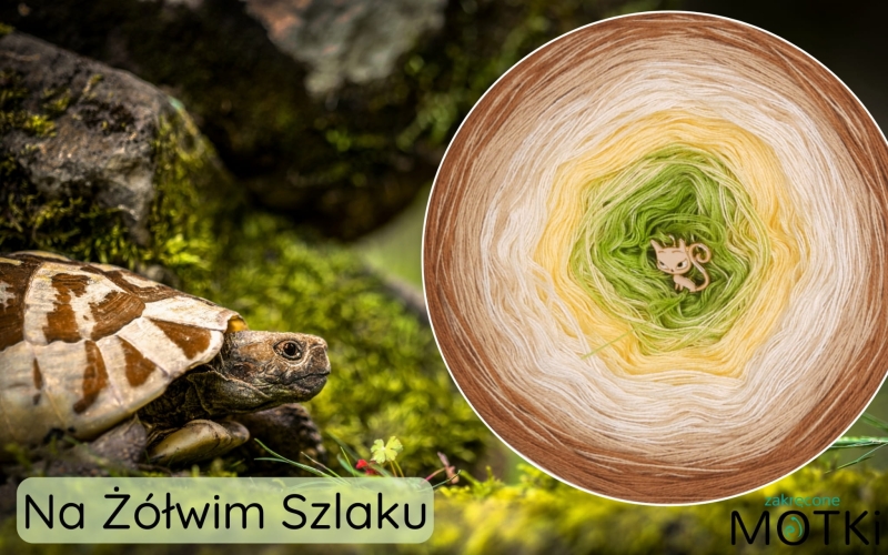 (5) Włóczka Ombre bawełna/akryl Na Żółwim Szlaku: liściasta zieleń/ jasny żółty/ krem/ ciepły beż/ ciepły brąz