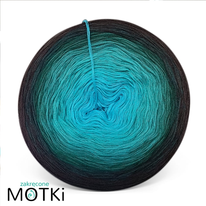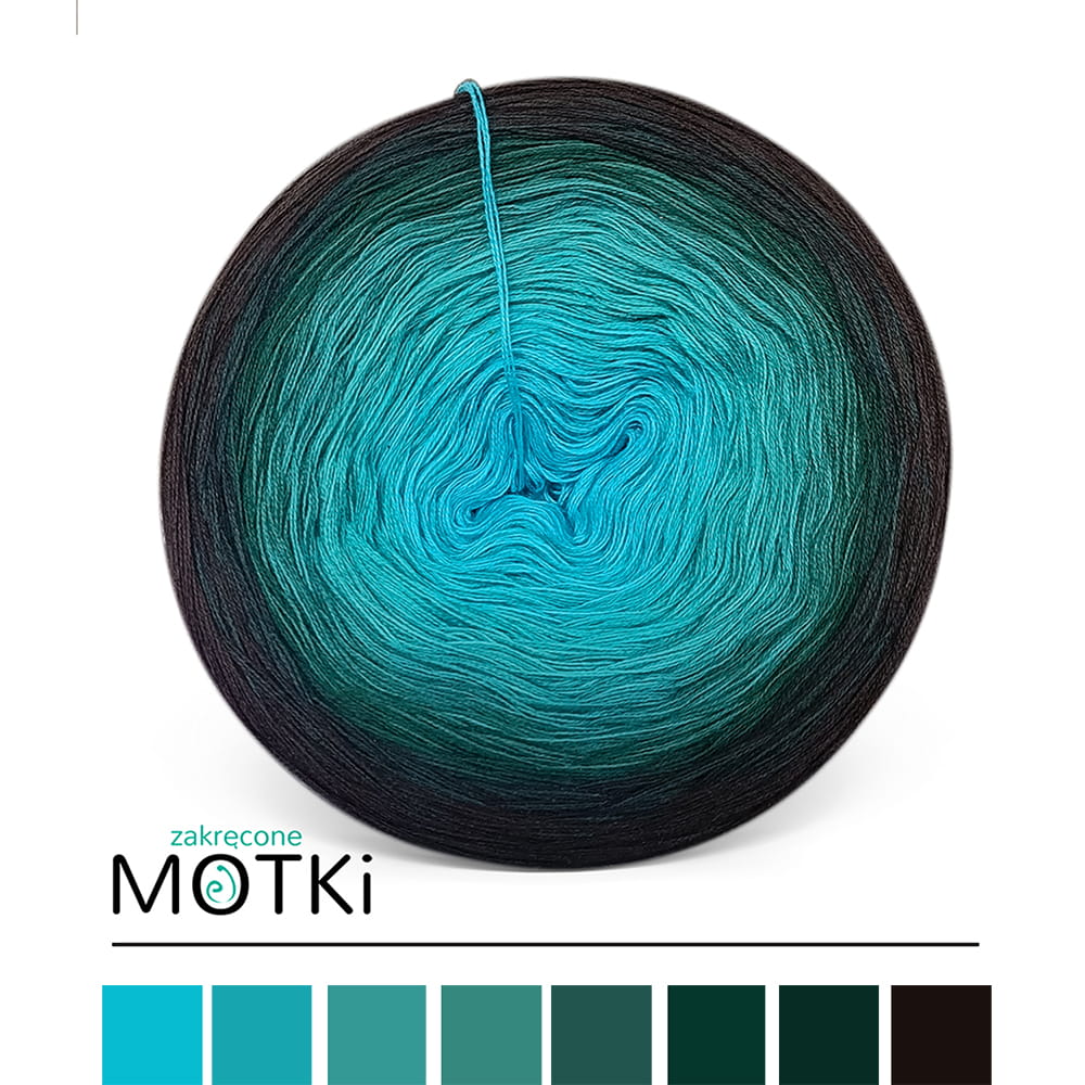Motek Nocne Niebo to wyjątkowy produkt z włóczki bawełniano-akrylowej, ręcznie kręcony z 3 lub 4 nitek, dostępny w ośmiu kolorach, które tworzą urzekające ombre: czekolada, ciemna butelka, butelkowa zieleń, ciemny szmaragd, morski, opal, grynszpan i turkus. Te głębokie odcienie nawiązują do tajemniczego piękna nocnego nieba, gdzie każdy kolor płynnie przechodzi w kolejny, tworząc efekt, który zachwyca i inspiruje do twórczości.