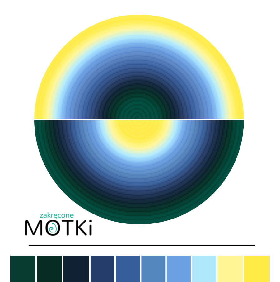 (10) Motek Ombre b/ a Boruta: butelkowa zieleń/ ciemna butelka/ granat/ ciemny niebieski/ ciemny atrament/ jeans/ błękit/ jasny niebieski/ jasny żółty/ słoneczny żółty