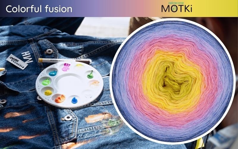 (10) Motek Ombre b/ a Colorful fusion: limetka/ intensywny żółty/ słoneczny żółty/ łososiowy/ róż/ wrzos/ krokus/ błękit/ jeans/ indygo