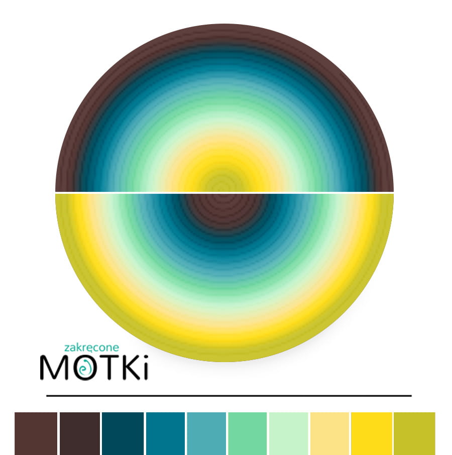 (10) Motek Ombre b/ a Different: limetka/ intensywny żółty/ jasny żółty/ jasna pistacja/ pistacja/ patyna/ jasny petrol/ petrol/ czekolada/ brąz