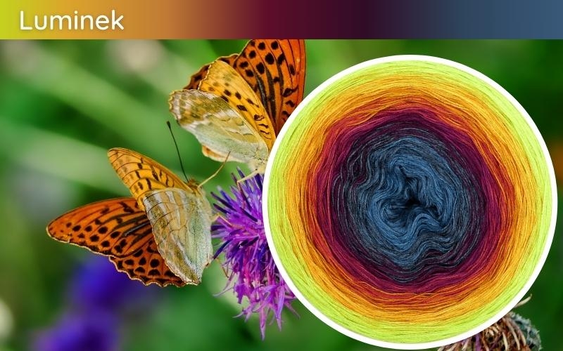 (10) Motek Ombre b/ a Luminek: denim/ indygo/ ciemny denim/ ciemna jeżyna/ jeżyna/ cegła/ curry/ kurkuma/ limetka/ neonowa zieleń