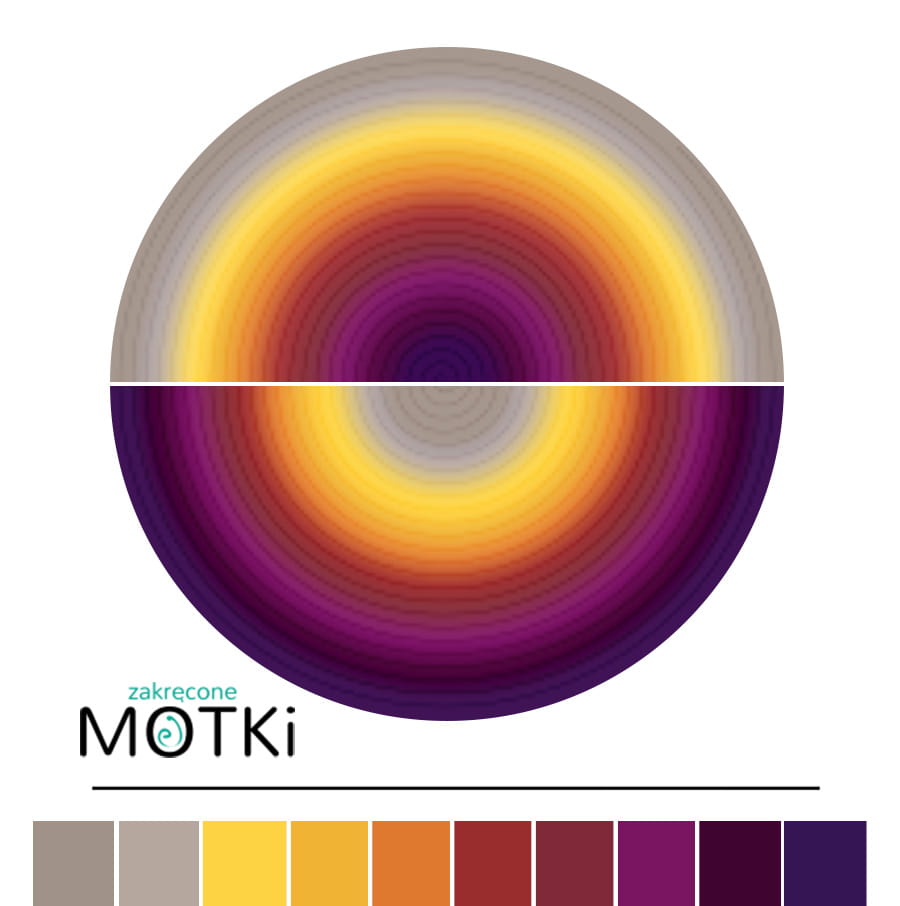 (10) Motek Ombre b/ a Siwa: zimny beż/ chłodny beż/ żółty/ kurkuma/ koniak/ cegła/ malaga/ jeżyna/ ciemna jeżyna/ fiolet