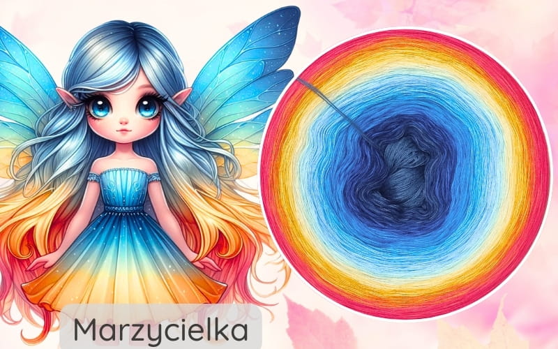 (14) Marzycielka - b/a denim/ ciemny niebieski/ jasny kobalt/ lazur/ jasny lazur/ cyjan/ baby blue/ jasny błękit/ jasna pistacja/ jasny żółty/ intensywny żółty/ kurkuma/ koniak/ koral/ piwonia