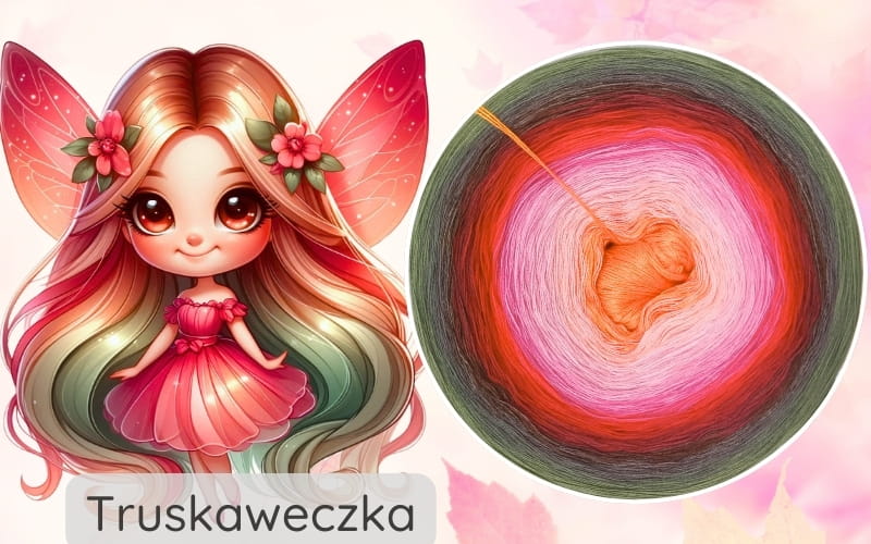 (14) Truskaweczka - b/a mango/ łososiowy róż/ jasny róż/ landrynkowy róż/ magneta/ jasna fuksja/ intensywna czerwień/ czerwień/ burgund/ malaga/ brąz/ zimny brąz/ szaro-brązowy/ khaki/ jasna wojskowa zieleń