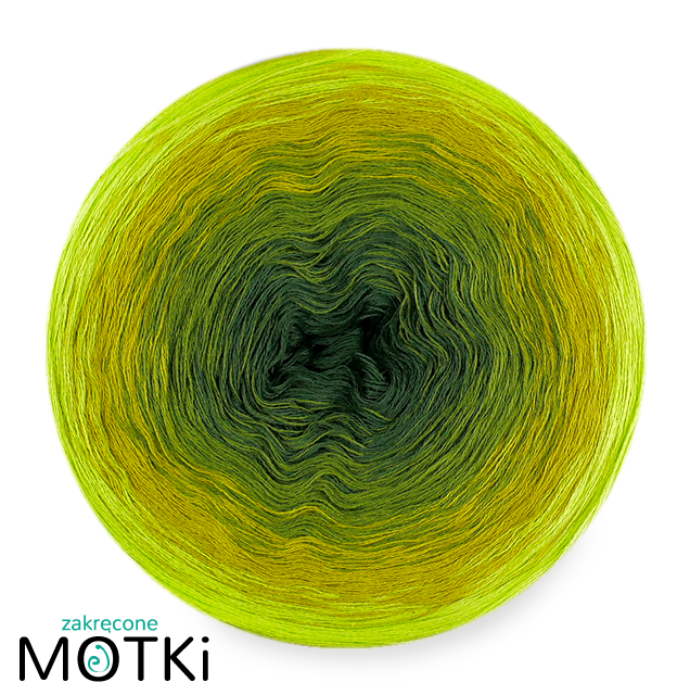 (4) Włóczka Ombre Bawełna Zero Waste - Z103a: wojskowa zieleń/ jasna wojskowa zieleń/ trawa cytrynowa/ zielone jabłuszko