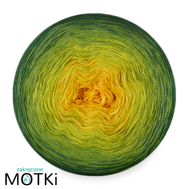 (4) Włóczka Ombre Bawełna Zero Waste - Z104: kurkuma/ trawa cytrynowa/ jasna wojskowa zieleń/ wojskowa zieleń