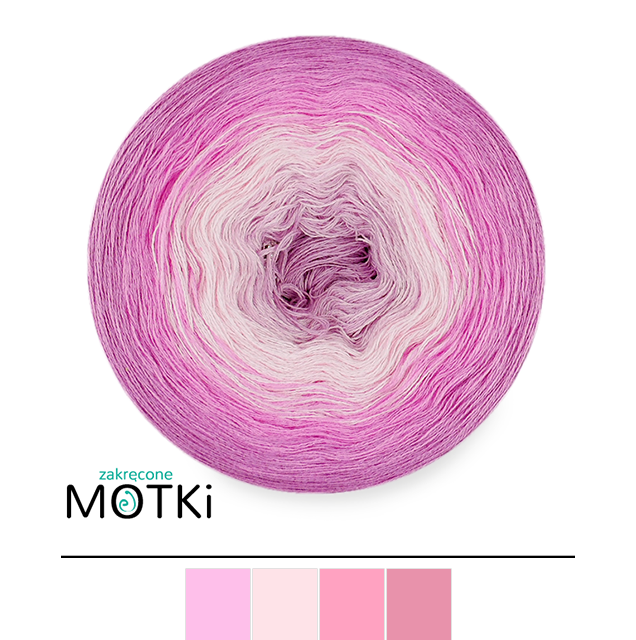 (4) Włóczka Ombre Bawełna Zero Waste - Z121: jasny fiolet/ jasny róż/ róż/ wrzos