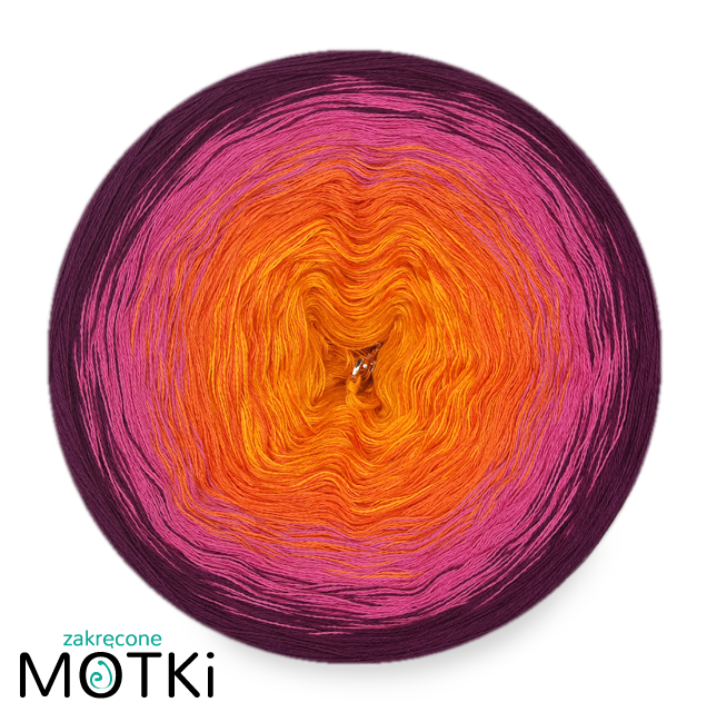 (4) Włóczka Ombre Bawełna Zero Waste - Z7: żółty/ pomarańcz/ jasna fuksja/ jeżyna