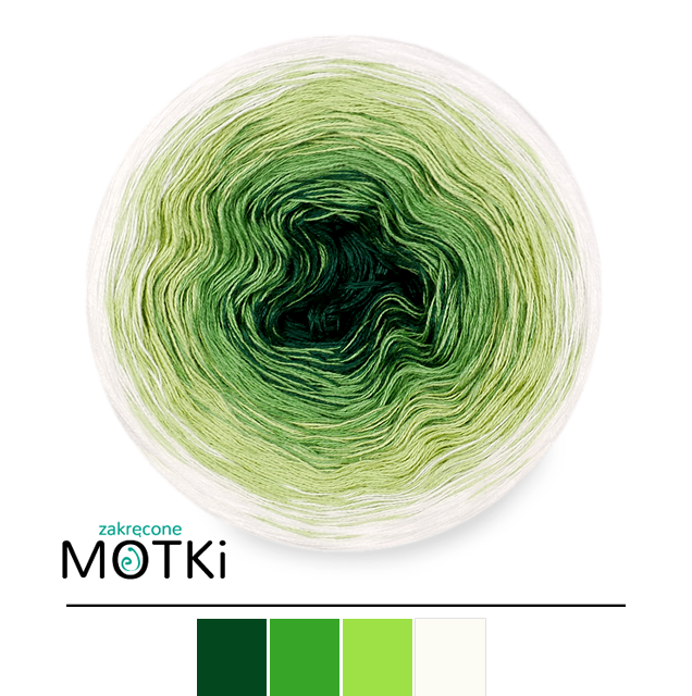 (4) Włóczka Ombre bawełna/akryl B100: butelkowa zieleń/ zieleń/ liściasta zieleń/ biały