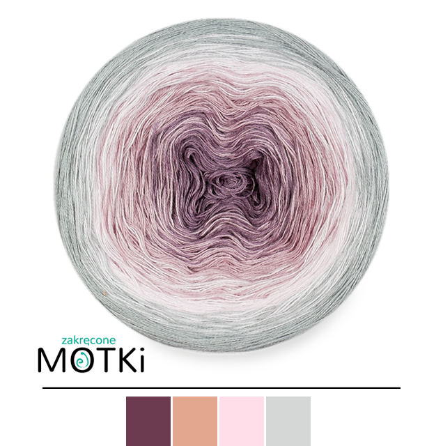 (4) Włóczka Ombre bawełna/akryl B148: brudny fiolet/ lila/ pudrowy róż/ jasny szary