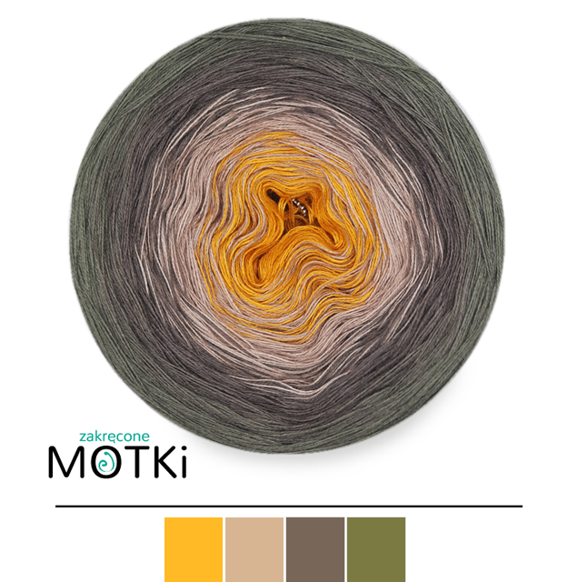 (4) Włóczka Ombre bawełna/akryl B397: kurkuma/ ciemny beż/ szaro-brązowy/ khaki