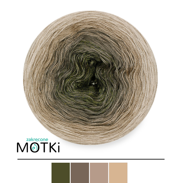 (4) Włóczka Ombre bawełna/akryl B444: wojskowa zieleń/ szaro- brązowy/ beżowo-szary/ ciemny beż