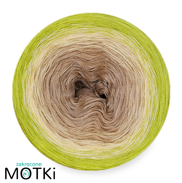 (4) Włóczka Ombre bawełna/akryl B447a: zimny beż/ ciepły beż/ jasny żółty/ kiwi