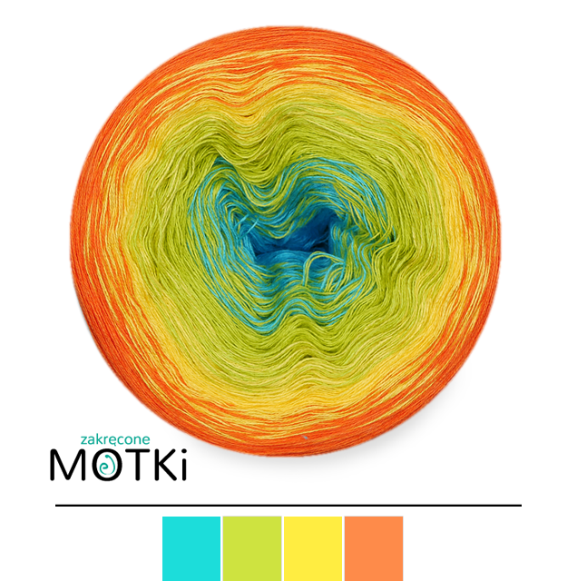 (4) Włóczka Ombre bawełna/akryl B448: turkus/ kiwi/ słoneczny żółty/ mango