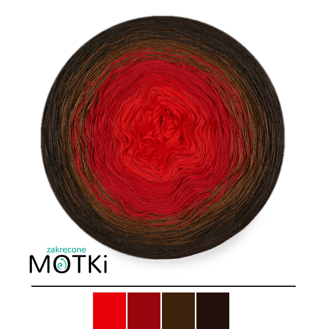 (4) Włóczka Ombre bawełna/akryl B514: czerwień/ burgund/ brąz/ czekolada