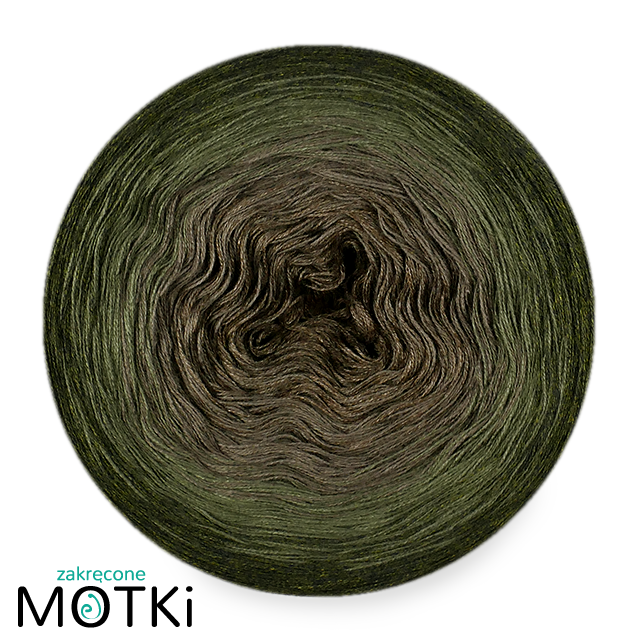 (4) Włóczka Ombre bawełna/akryl B628: zimny brąz melanż/ szaro-brązowy/ khaki/ wojskowa zieleń