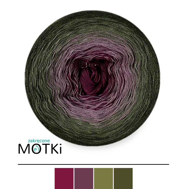 (4) Włóczka Ombre bawełna/akryl B642: ciemna jeżyna/ brudny fiolet/ khaki/ wojskowa zieleń