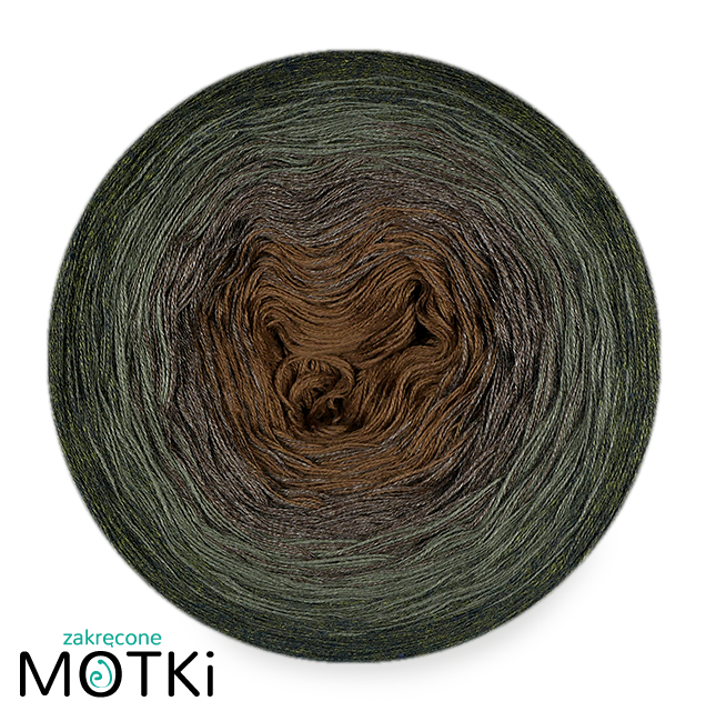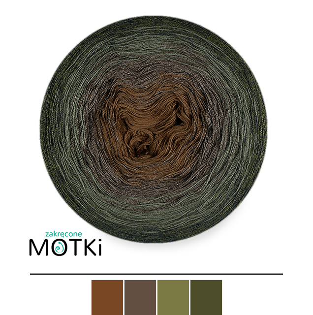 (4) Włóczka Ombre bawełna/akryl B647: orzech/ zimny brąz melanż/ khaki/ wojskowa zieleń