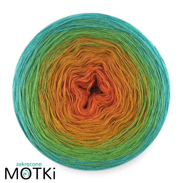 (4) Włóczka Ombre bawełna/akryl B76: koniak/ curry/ zielony/ opal
