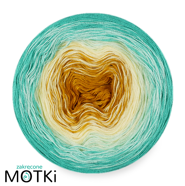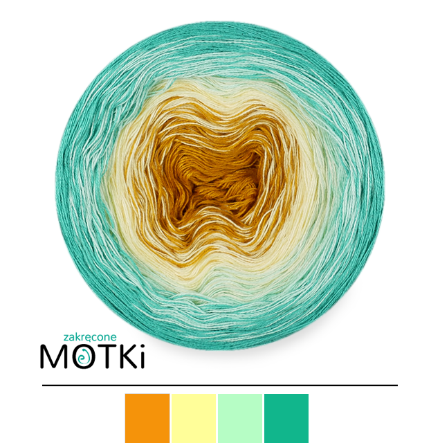 (4) Włóczka Ombre bawełna/akryl B85: curry/ jasny żółty/ pistacja/ opal