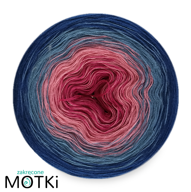 (4) Włóczka Ombre bawełna/akryl B90: fuksja/ róż/ niebieski/ ciemny niebieski