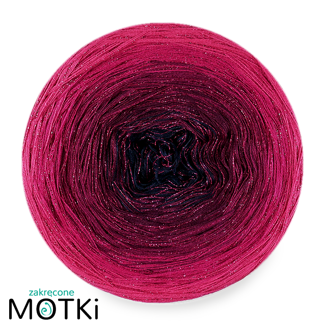 Zakręcony Motek o składzie 46,5% bawełna, 46,5% akryl, 7% lurex, zwinięty ręcznie z 2, 3 lub 4* nitek.
