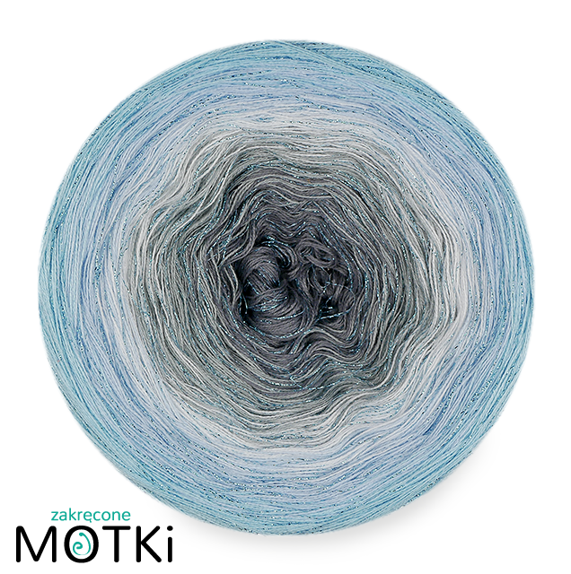 Zakręcony Motek o składzie 46,5% bawełna, 46,5% akryl, 7% lurex, zwinięty ręcznie z 2, 3 lub 4* nitek.