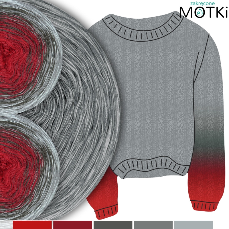 (5) Komplet motków na Sweterek Six 2a czerwony/ burgund/ ciemny szary/ szary/ jasny szary