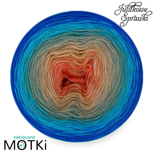 Zakręcony Motek o składzie 50% wełna merynos i 50% akryl, zwinięty ręcznie z 3 lub 4* nitek.