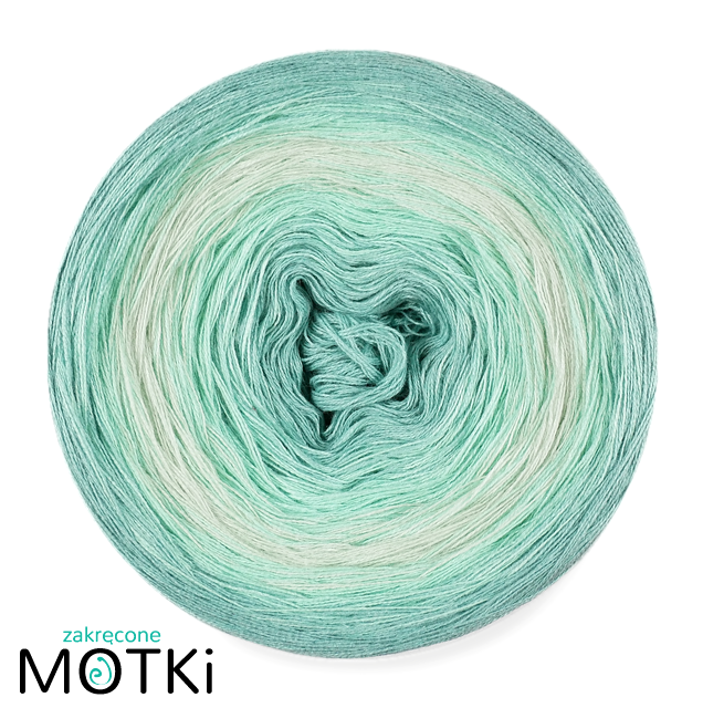 Zakręcony Motek o składzie 50% bawełna 50% akryl, zwinięty ręcznie z 2-4 nitek.