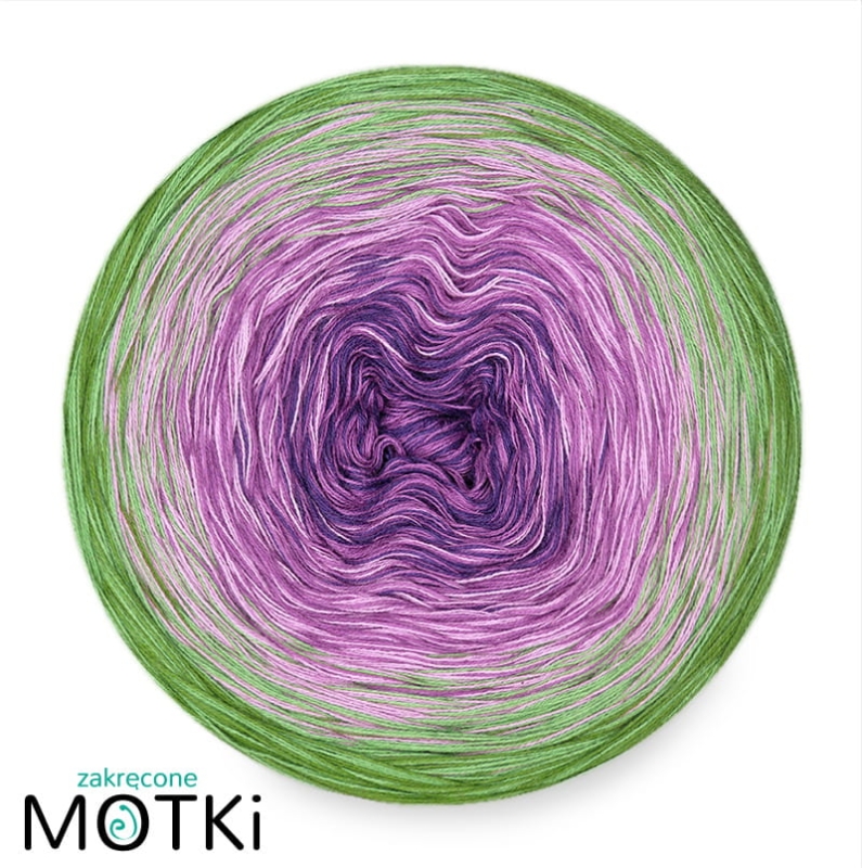 Zakręcony Motek o składzie 50% bawełna i 50% akryl, zwinięty ręcznie z 6 nitek.