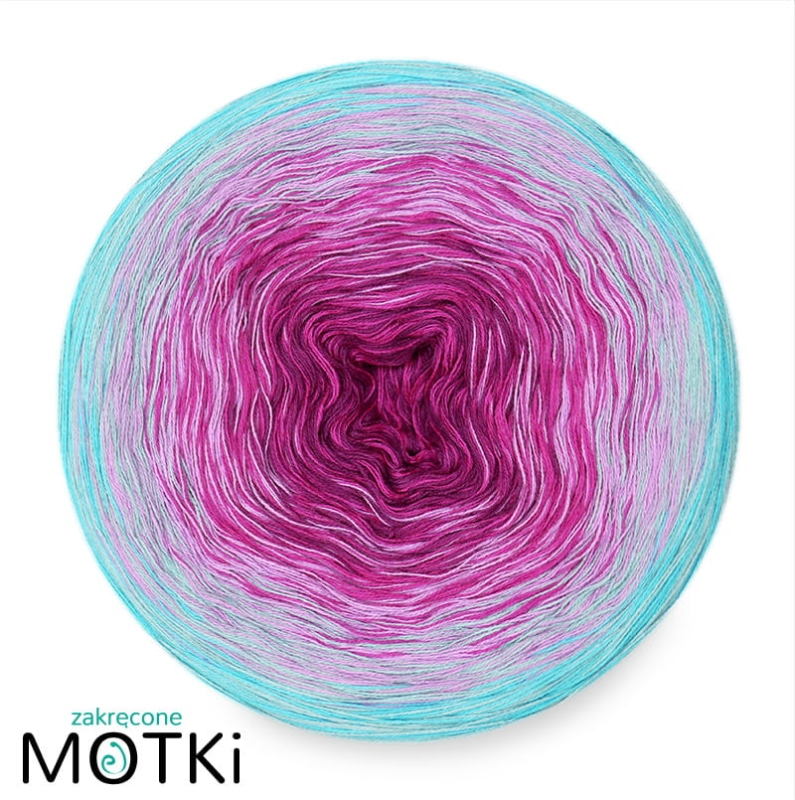 Zakręcony Motek o składzie 50% bawełna i 50% akryl, zwinięty ręcznie z 6 nitek.