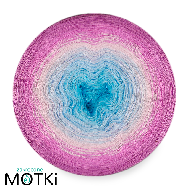 (5) Włóczka Ombre Bawełna Zero Waste - Z111: błękit/ jasny niebieski/ jasny róż/ róż/ wrzos