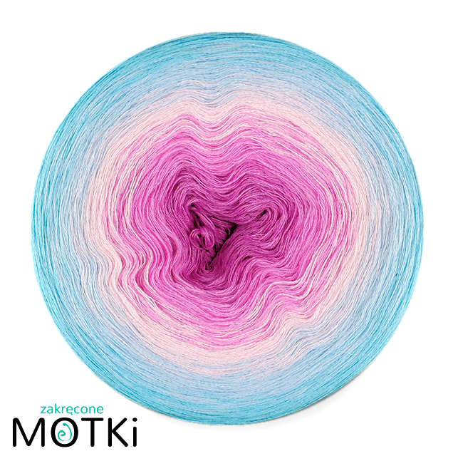 (5) Włóczka Ombre Bawełna Zero Waste - Z111a: wrzos/ róż/ jasny róż/ jasny niebieski/ błękit