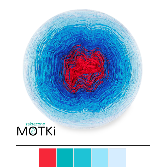 (5) Włóczka Ombre Bawełna Zero Waste - Z125: czerwień/ lazur/ turkus/ błękit/ jasny niebieski