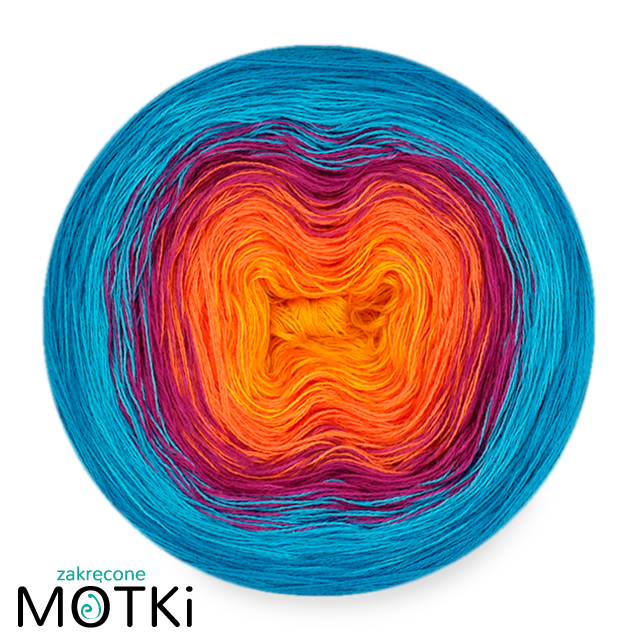 (5) Włóczka Ombre Bawełna Zero Waste - Z19: żółty/ pomarańcz/ fuksja/ turkus/ lazur