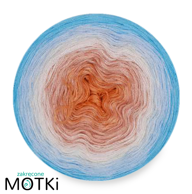 (5) Włóczka Ombre Bawełna Zero Waste - Z23:- łososiowy róż/ brzoskwinia/ krem/ jasny niebieski/ błękit