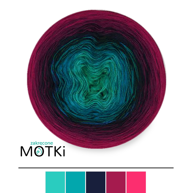 (5) Włóczka Ombre Bawełna Zero Waste - Z24: opal/ morski/ granat/ jeżyna/ fuksja